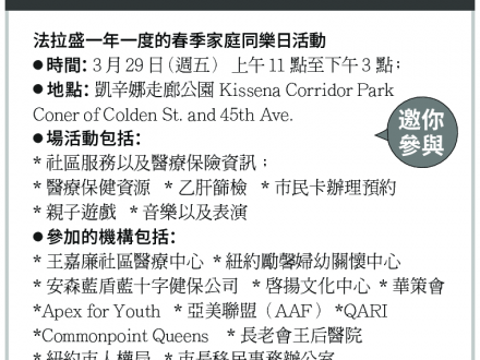春季家庭同樂日 法拉盛「凱辛娜走廊公園」