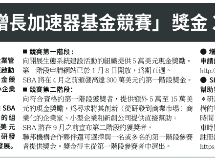 聯邦小企業 管理局「增長加速器基金競賽」 獎金300萬元