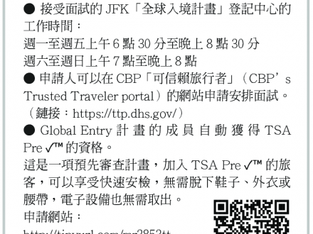 海關「全球入境計畫」開放 返美享快速通關