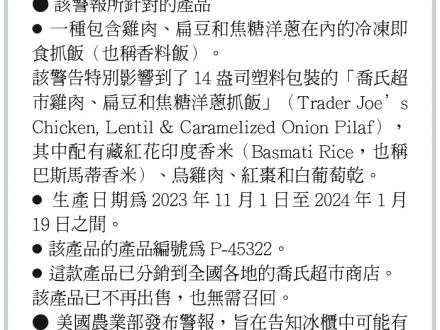 美農業部發警報 Trader Joe’s香料飯發現石塊