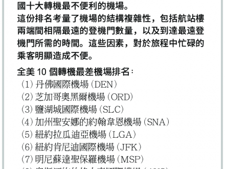 全美轉機最不便利的十個機場