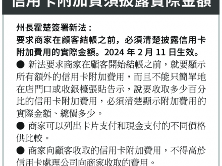 紐約新法生效 信用卡附加費用須披露實際金額