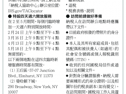 美國稅局「納稅人協助中心」 提供面對面稅務諮詢服務