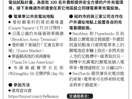 外賣郎的福利 紐約市電單車公共充電站試點計畫