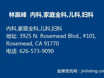 林赢峰 内科,家庭全科,儿科,妇科 626-573-9090