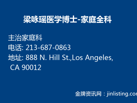 梁咏瑶医学博士-家庭全科 213-687-0863