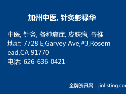加州中医, 针灸彭禄华 – LuHua Peng/彭祿華626-636-0421