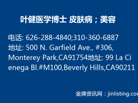 叶健医学博士 皮肤病;美容- J.Jim Ye,M.D./葉健醫學博士 – J.Jim Ye,M.D。 626-288-4840