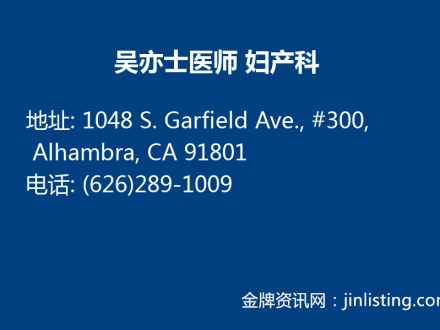 吴亦士医师 妇产科 (626)289-1009