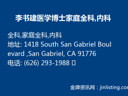 李书建医学博士 (626) 293-1988