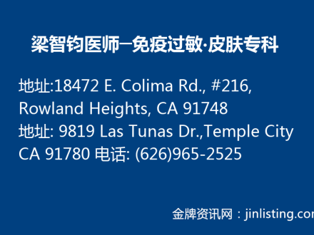 梁智钧医师─免疫过敏‧皮肤专科 (626)965-2525