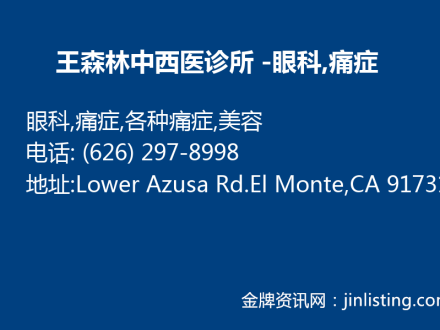 王森林中西医诊所 -眼科,痛症,各种痛症,美容 (626) 297-8998
