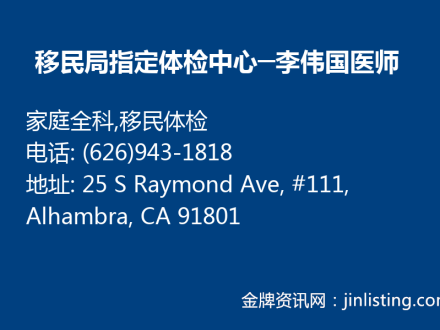 移民局指定体检中心─李伟国医师 (626)943-1818
