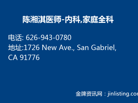 陈湘淇医师-内科,家庭全科 626-943-0780