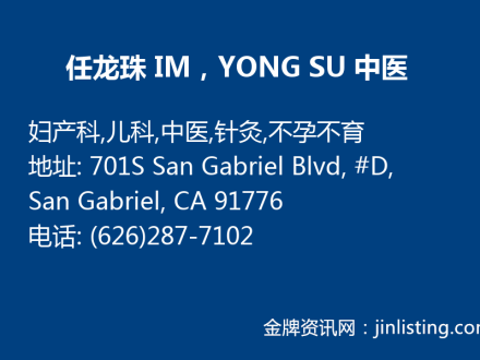 任龙珠 – IM,YONG SU 中医/任龍珠 – IM,永蘇(626)287-7102