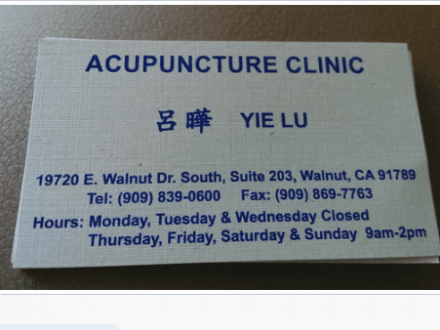吕晔中医诊所 – Acupuncture Clinic/呂曄中醫診所 – 針灸診所 (909)839-0600