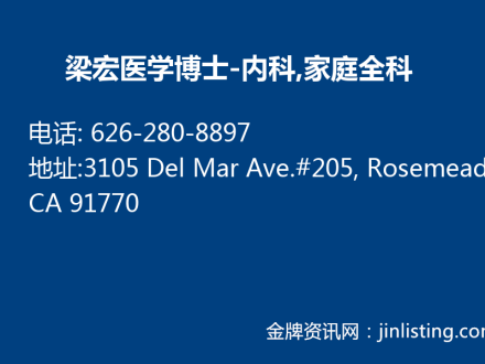 梁宏医学博士 – 内科,家庭全科 626-280-8897