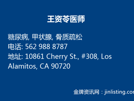 王资苓医师 – 糖尿病, 甲状腺, 骨质疏松 562 988 8787