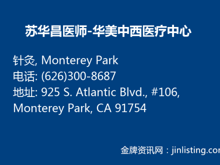 加州苏华昌医师-华美中西医疗中心 – HUACHANG SU-C.A. MEDICAL THERAPEUTIC CENTER/蘇華昌醫師 – 華美中西醫療中心 (626)300-8687...