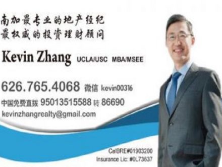 张凯文 (Kevin Zhang) 金牌经纪 专业诚信-电话 626-765-4068
