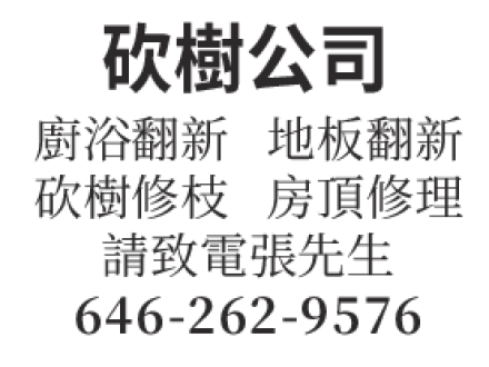 纽约专业砍树公司/929-720-8313/纽约房顶修理/法拉盛华人专业砍树公司
