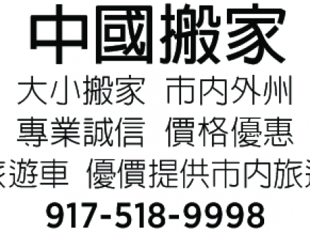 中國搬家 917-518-9998