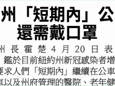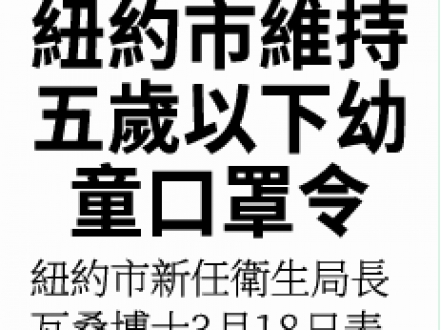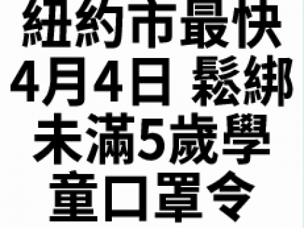 紐約市最快4月4日 鬆綁未滿5歲學童口罩令
