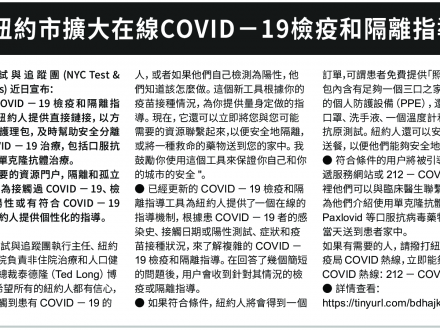 紐約市擴大在線COVID-19檢疫和隔離指導