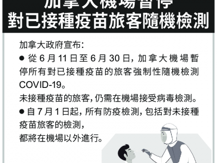 加拿大機場暫停 對已接種疫苗旅客隨機檢測