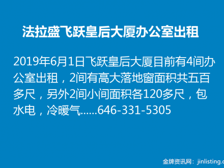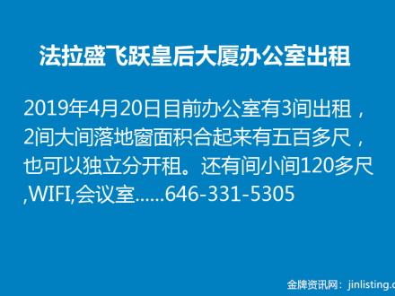 飞跃皇后大厦三层 写字间出租 电话:646-331-5305 (法拉盛写字间出租)