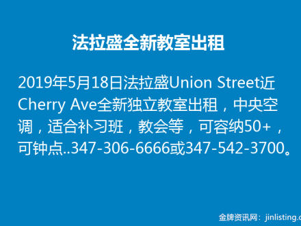 法拉盛全新教室出租 347-306-6666或347-542-3700