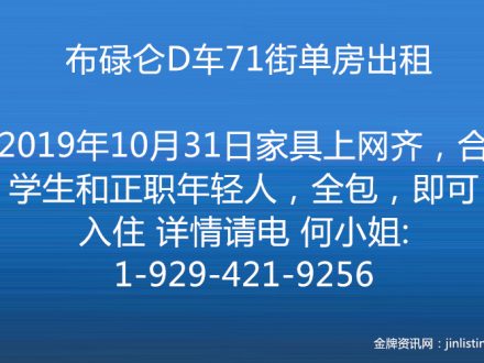 布碌仑D车71街单房出租