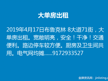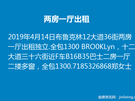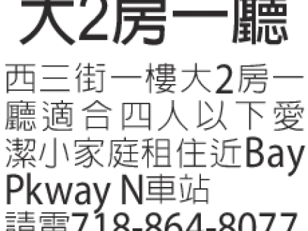 布碌侖BayPKwy72街兩房一廳 3478370673