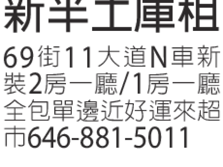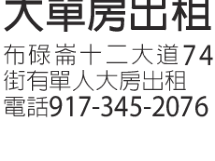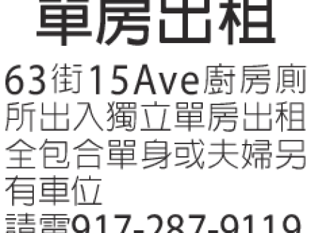 电梯公寓2室1厅中的大单房出租 646-509-5756
