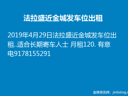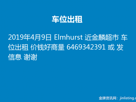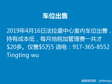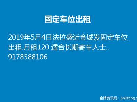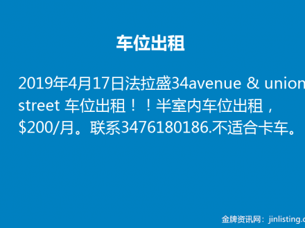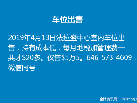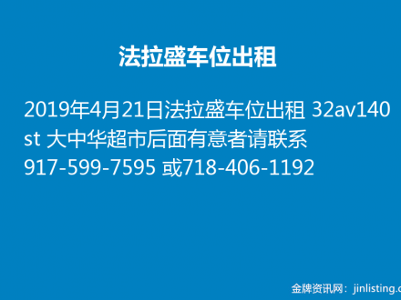 法拉盛车位出租 917-599-7595 或718-406-1192