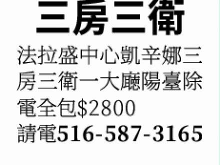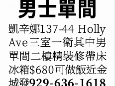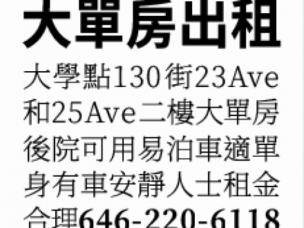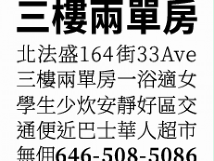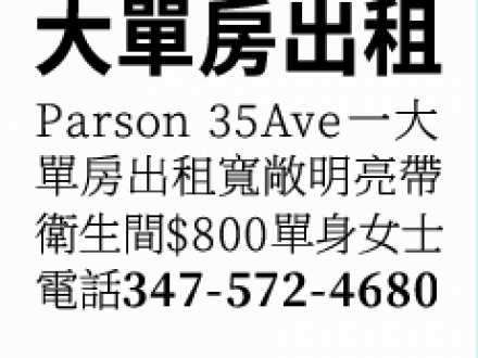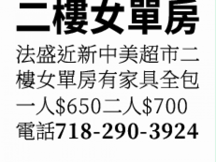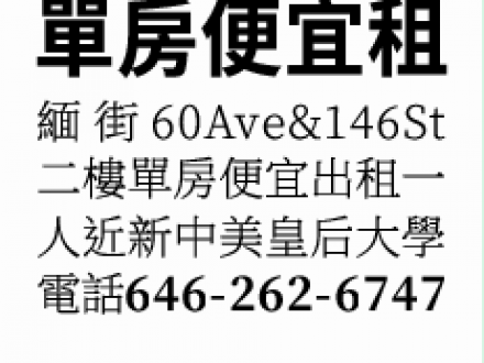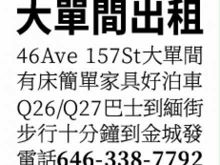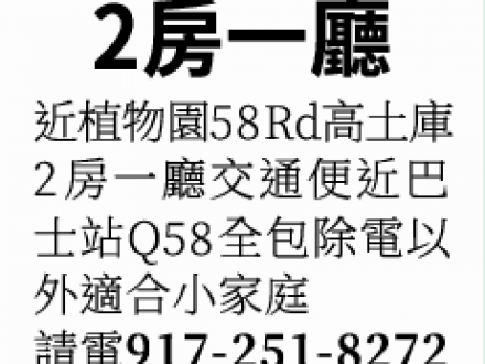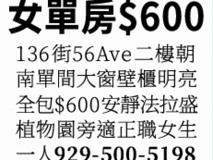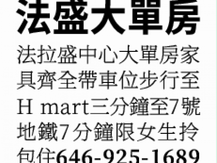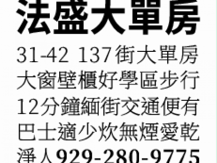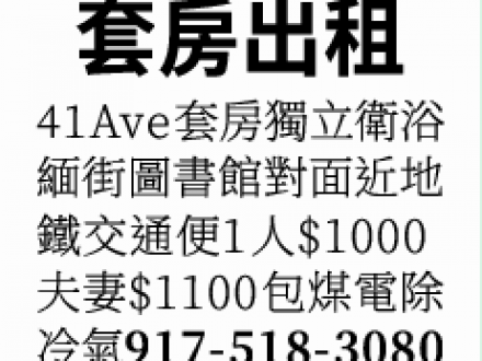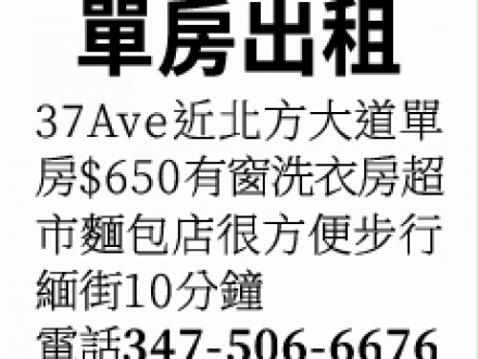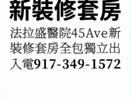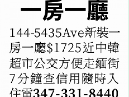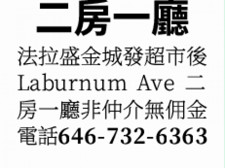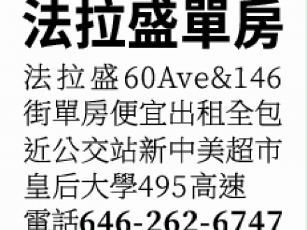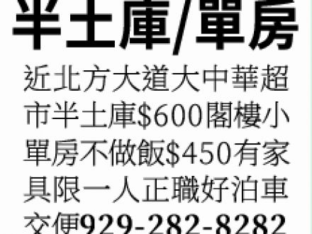 法拉盛屋主出租 半地库 2室1厅 独立厨房卫浴