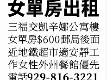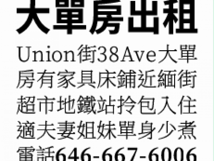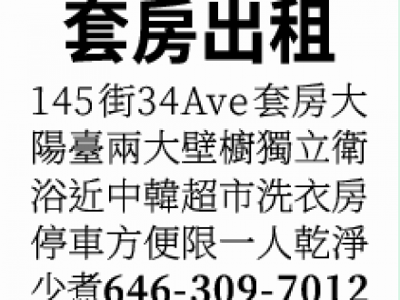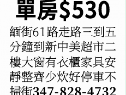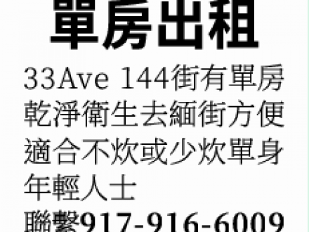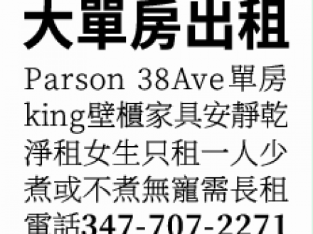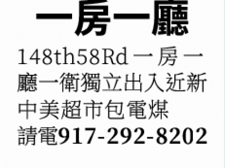 法拉盛單房套房出租