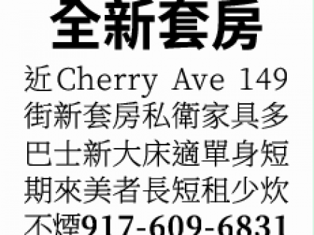 法拉盛市中心單間和特大套房出租