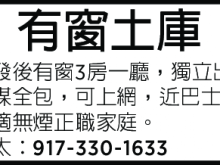 法拉盛 Auburndale 大型二楼1200sqft 三房二厅1.5卫,2街口LIRR, 包暖气熱水