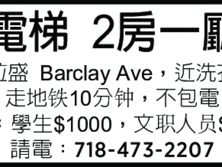 法拉盛中中中心 两房一厅 电梯公寓楼