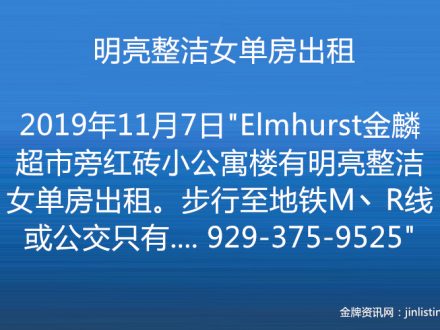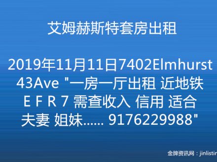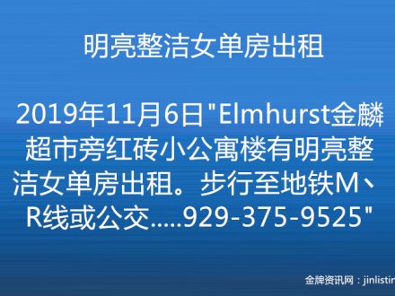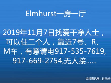 Elmhurst一房一厅 917-535-7619,917-669-2754