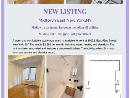 纽约曼哈顿中城罕见租盘 — 仅 $2,750/月!