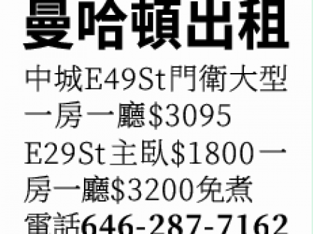 纽约曼哈顿东村整套统舱公寓出租$1775/月
