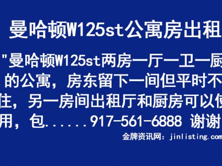 纽约曼哈顿近时代广场一室一厅出租$1900/月 电话:718-938-8377