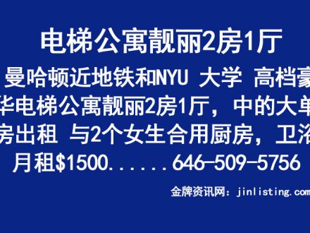曼哈顿超赞好房出租,性价比超高!紧靠中国城!