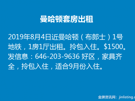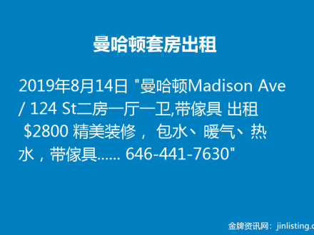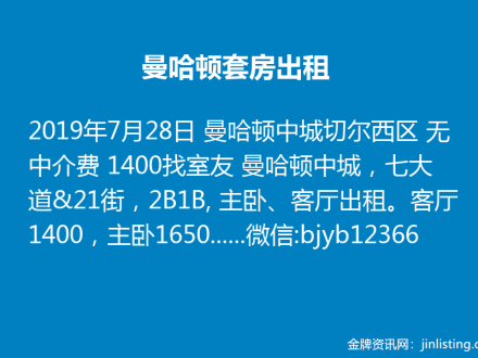 纽约市区曼哈顿超和皇后区可马上入住出租公寓_20190819