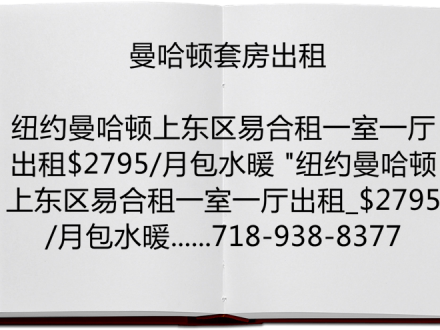 纽约曼哈顿上东区易合租一室一厅出租_$2795/月包水暖