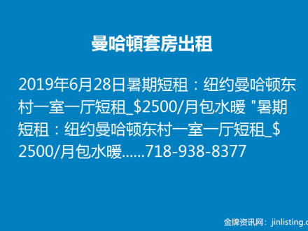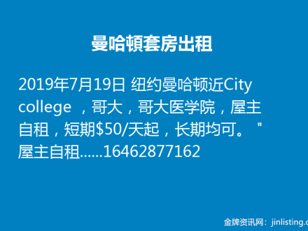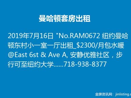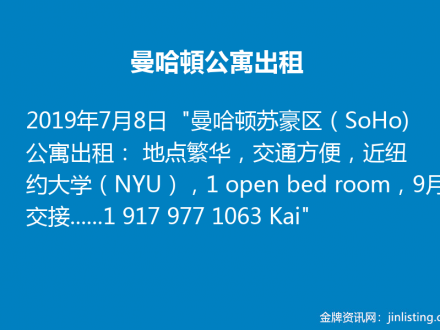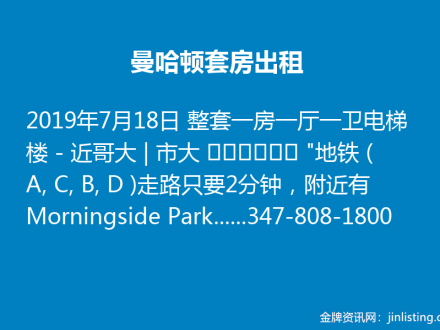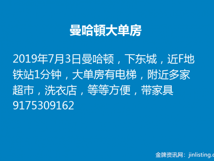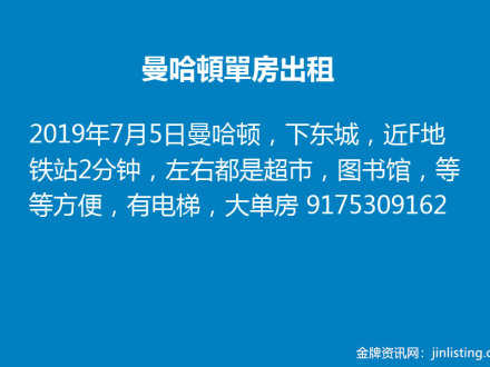纽约市区出租房屋公展(7/2)——曼哈顿老公寓