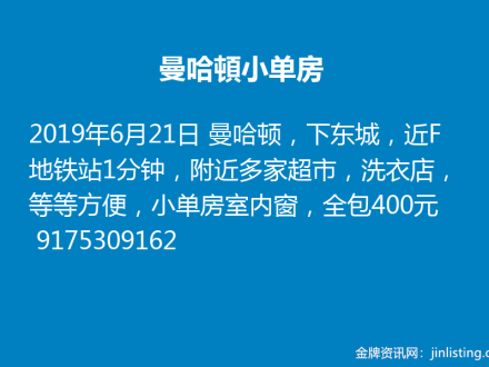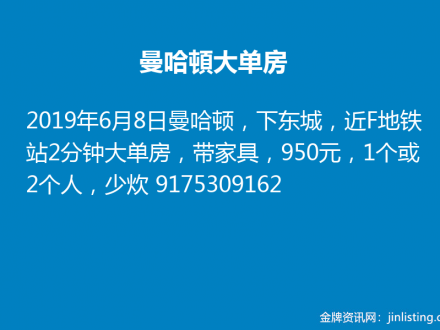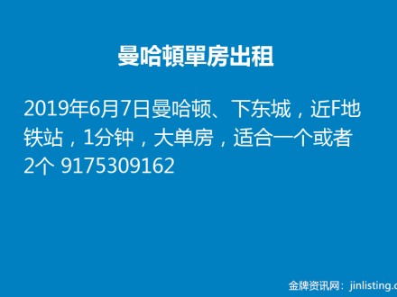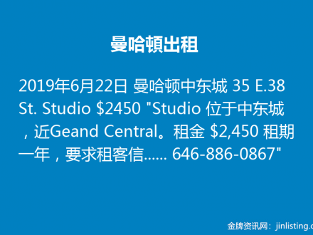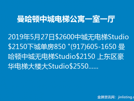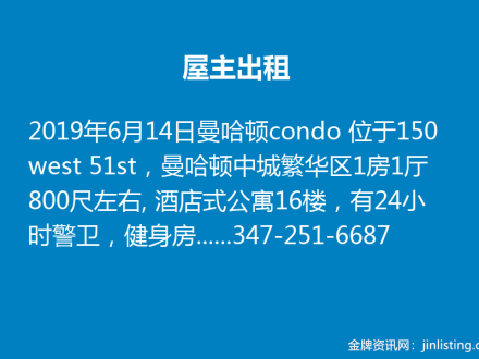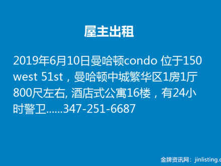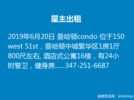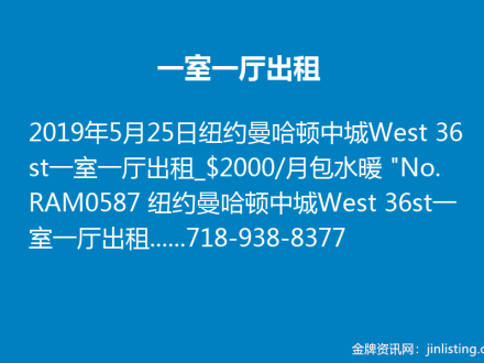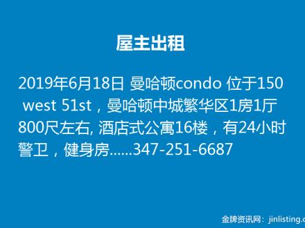 纽约曼哈顿中城一室一厅出租_$2700/月