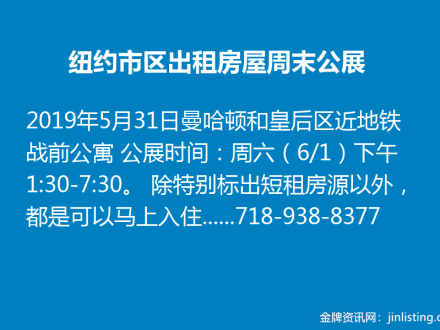 纽约市区出租房屋周末公展——曼哈顿和皇后区近地铁战前公寓